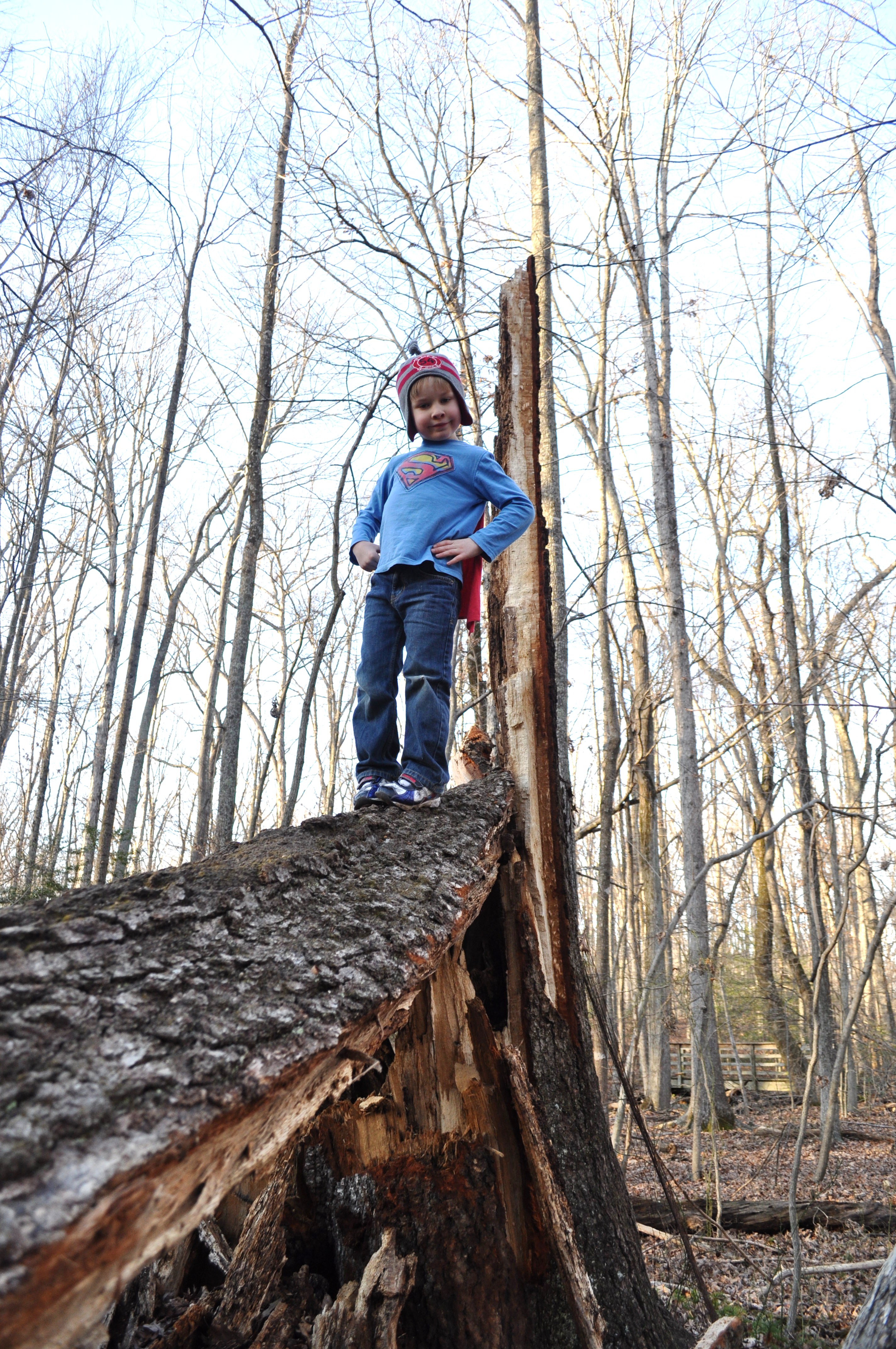 I dropped my camera. Right before all the action began on Christmas Eve. We were walking in the woods behind my parents’ house, investigating a huge tree that had fallen over and was completely hollow inside. The rest of my family was at home playing “Elves” — putting out all the presents. Santa would arrive while we were out with the munchkins.