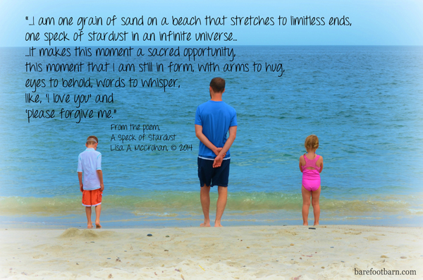 There are moments that suddenly stop you and you sense your place in the order of things. I had that moment the other day at mass, sitting there next to my beloved, realizing that someday they’ll read my name, as part of the prayers for all those who have died. Maybe it’s tomorrow, maybe it’s 50 more years from now. But the truth is, I’ll cease to exist. And sitting there, in the silence and stillness, the truth swirled through me that I’m just a speck of stardust…but our light carries on long after we leave this form. Here’s the poem that came across my heart…