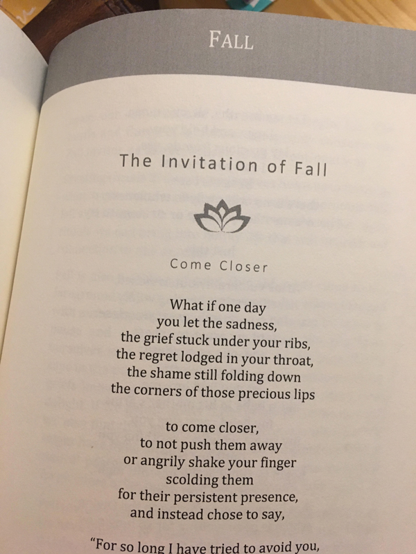 This is from my book, Gems of Delight.  This poem opens the Fall section of the book.  The sacred invitation of fall is to allow what wants to come into the light — gently, slowly — to come closer.  The late Celtic poet, John O’Donohue, described that the kind of lighting the soul prefers is the soft light of candlelight, rather than the blaring light of a spotlight.  I see my work with clients as “working in candlelight,” slowly, safely allowing space for shadows and light to dance together.