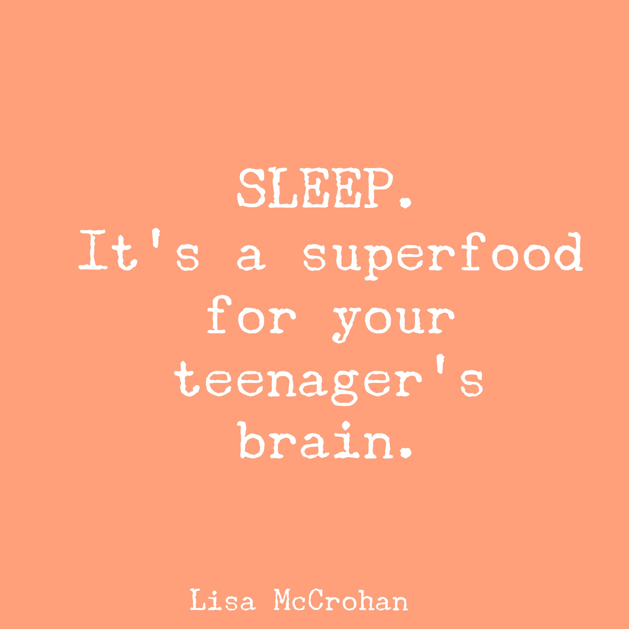 Your teenager’s brain is growing so rapidly and good, consistent sleep is a superfood for their brains. Let’s fuel them with the good stuff. And, in the case of sleep, this “good stuff'” is free!