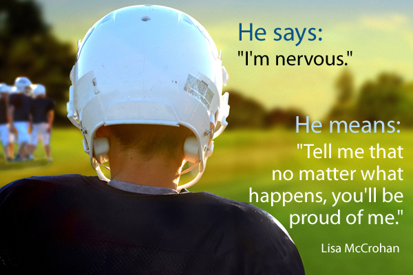 Tell him that your love and pride in him is not determined by what he does or how he performs. Tell them that no matter the outcome, you’ll love them. Period. You’ll be helping your child go out into life, try, AND fail…AND realize it’s okay! THAT builds resilience and will serve them long after they leave your house for college.