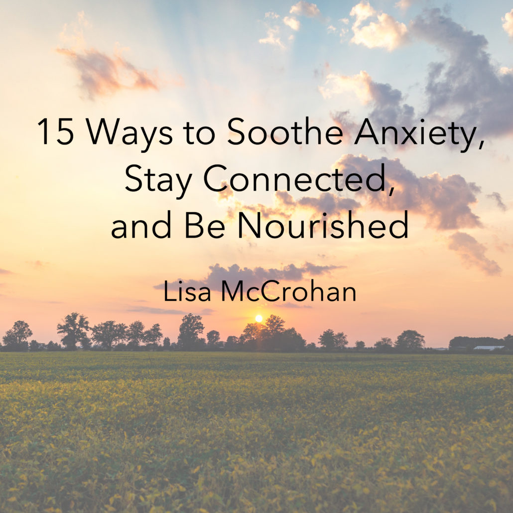 These are unusual and unprecedented times. Our collective and personal anxiety is up. Here are 15 ways to help soothe your anxiety, stay connected (to your heart, your dear ones, and humanity), and be nourished (mind, body, soul):