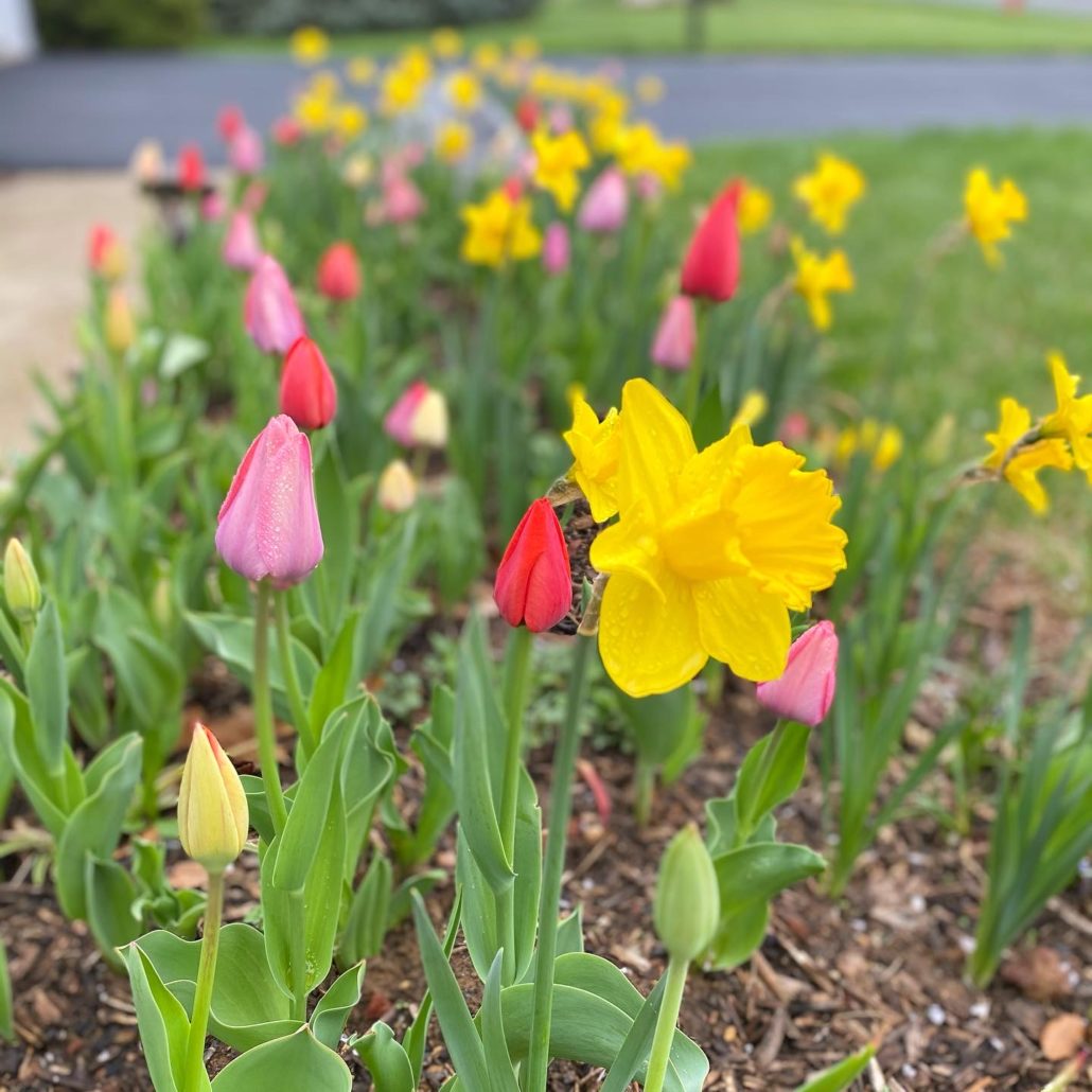 Last fall, in the middle of the pandemic, I looked again at our front garden and I said to Brian, “I would love to see daffodils in our sea of tulips!”