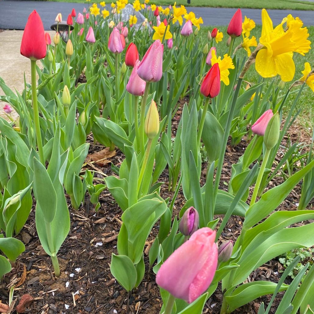 I didn’t tell you that I waited decades to have a house where I drive up or walk up to it and see a sea of tulips. Tulips are my favorite flower and they simply delight my heart. But there wasn’t ever the right space in our previous homes for a sea of tulips. We’d buy a bunch of tulips and put them in a vase. And that was delightful too. AND when we moved to this house, I instantly saw it: a sea of tulips in our front garden.